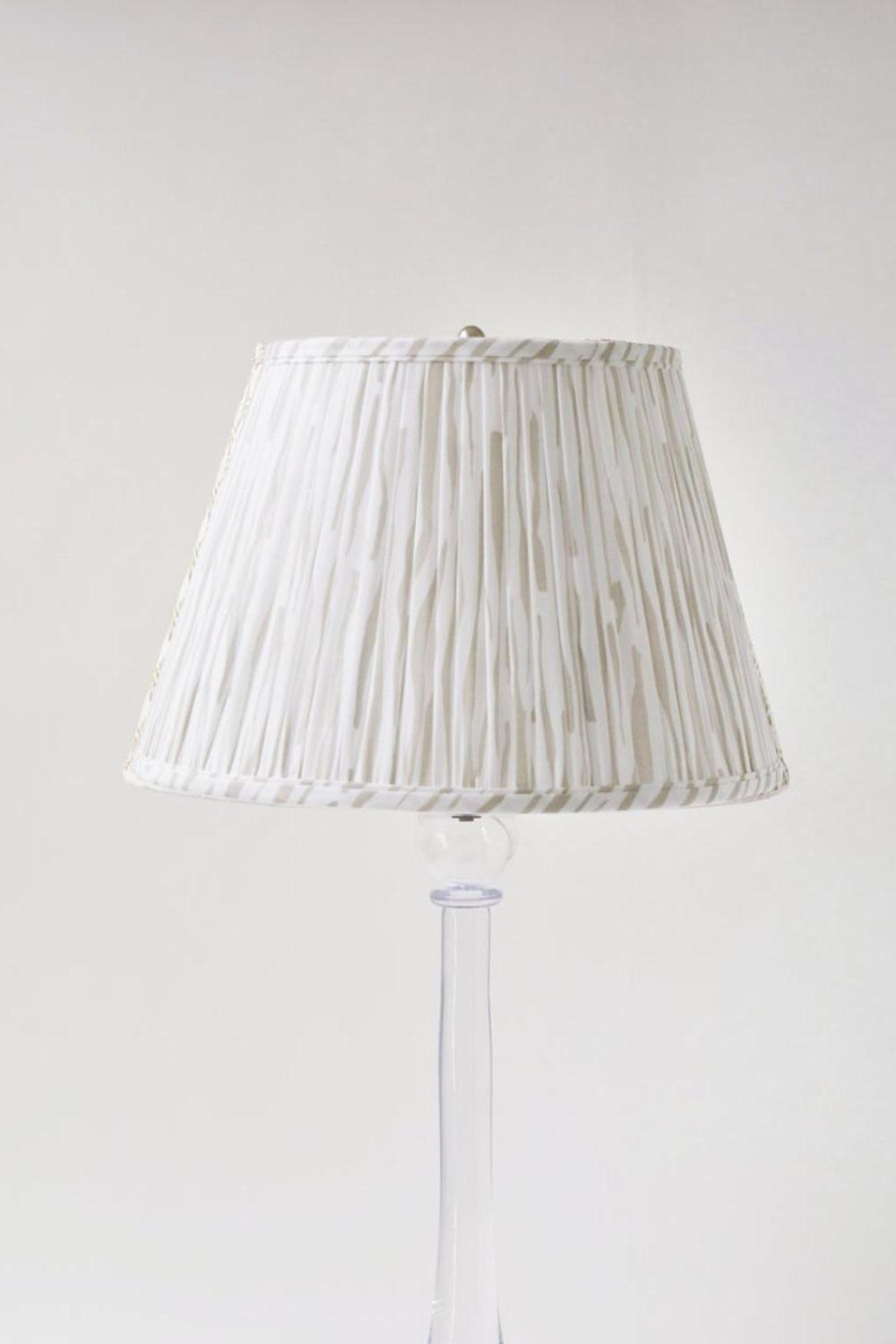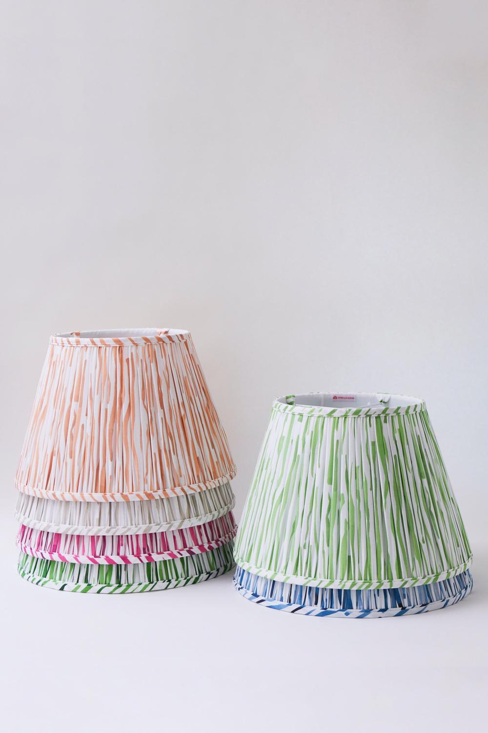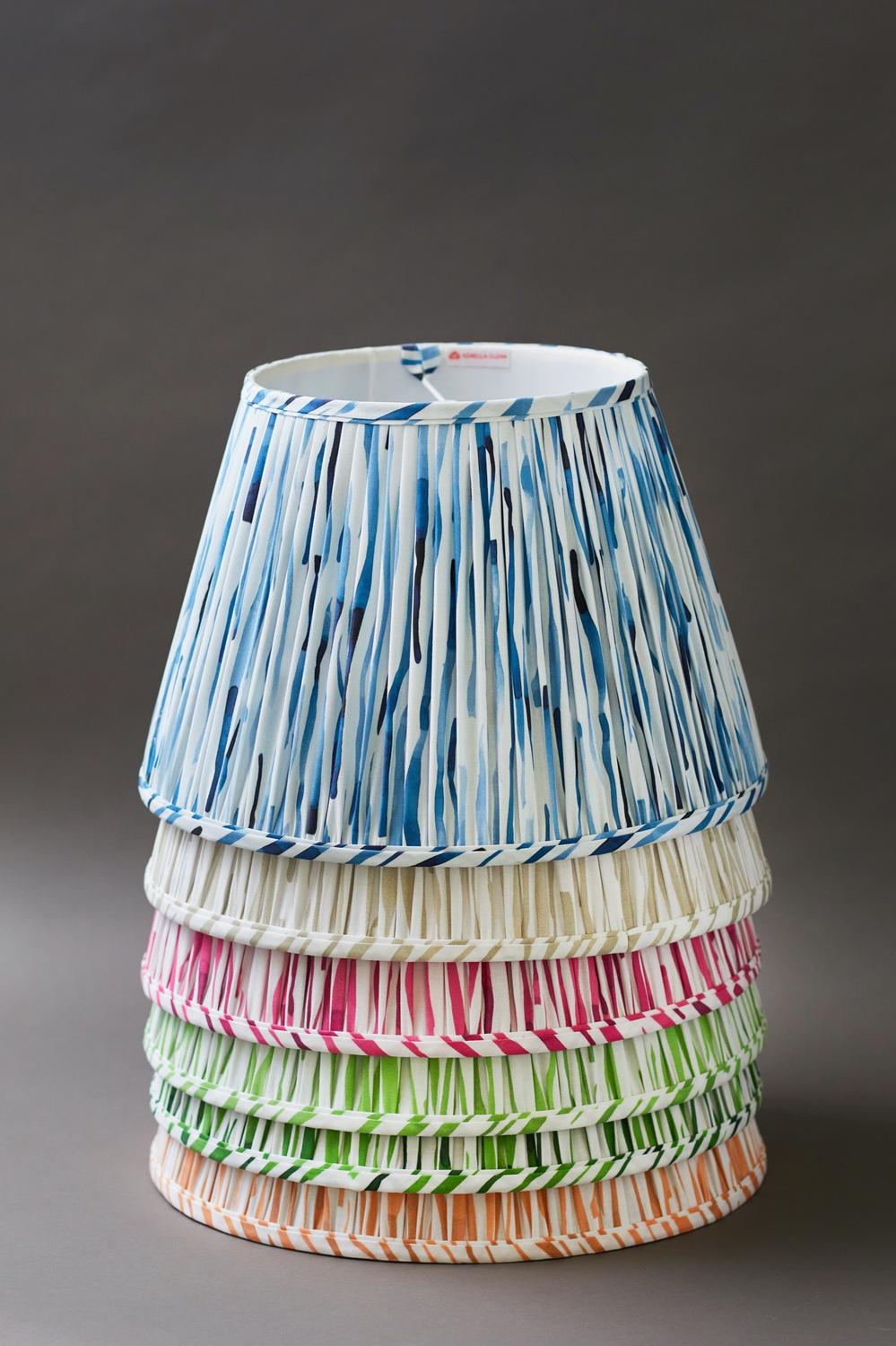 Add subtle (or bold!) interest to your design scheme with a Sorella Glenn patterned lampshade. All patterned lampshades feature our shirred pleat; each pleat is hand folded and pinned before being sewn onto the frame. They feature our signature white wires and washer at the top. The 6"and 8" lampshades are made with brass candle-bulb clips, perfect for sconces and chandeliers.